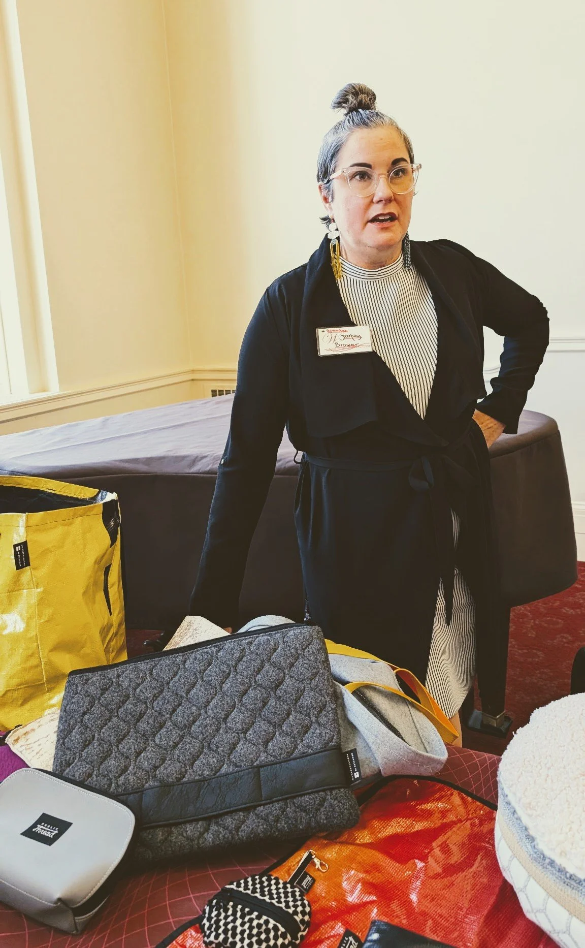 Public Thread is a nonprofit organization that kept 16.8 tons of textile waste from landfills in 2024. The organization uses textiles and upcycles them into new and exciting products such as totes, backpacks, pouches, pillows, poufs, and more.